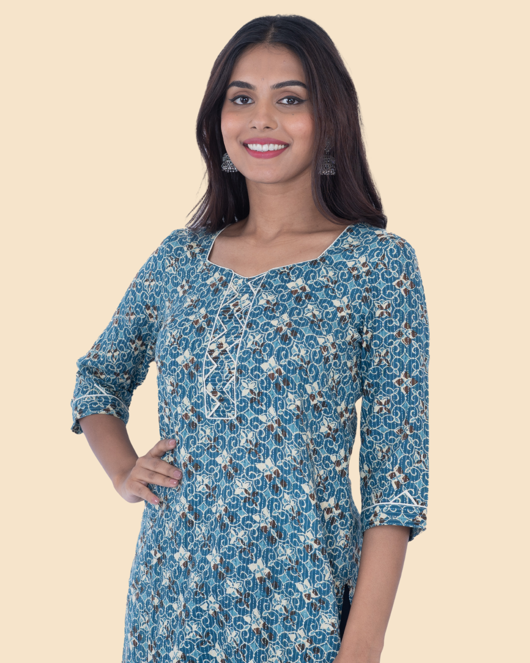 Blue Cotton Ajrak Hand Block Printed Long Kurta